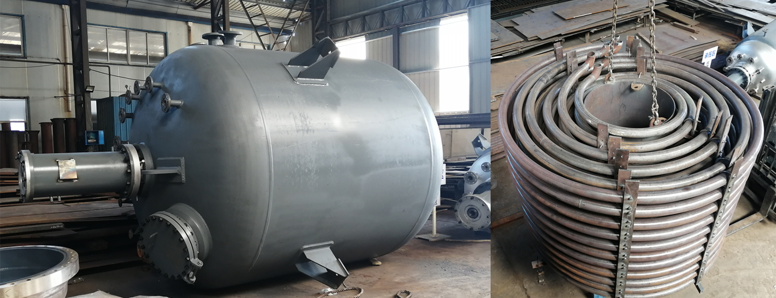 加氫反應分為吸熱反應和放熱反應,有些加氫反應在反應過程中會釋放大量的熱能。為了生產安全,并及時降低釜內溫度,有些工藝要求釜內配大面積的冷卻盤管。此時單層冷卻盤管無法滿足工藝要求,需要雙層或更多層盤管有效及時降溫。正威機械生產的6層盤管內配吸氫攪拌槳,加…